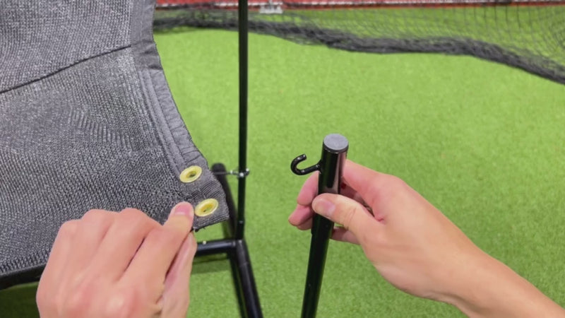 To make it easier to use,pull the net's ball drop hole firmly toward the ground about ten times. This helps loosen the net. The frame might bend a lot when you do this, but don't worry—it's very strong and made to handle it.