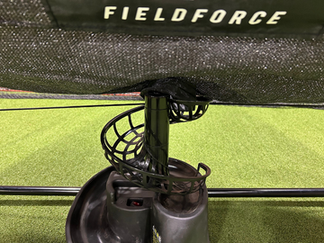 Your toss machine includes a ball rail. Please remove the ball rail completely when using the auto-return net. If the rail is left on, it will block the net and balls will not return.