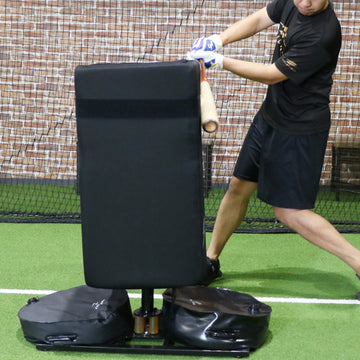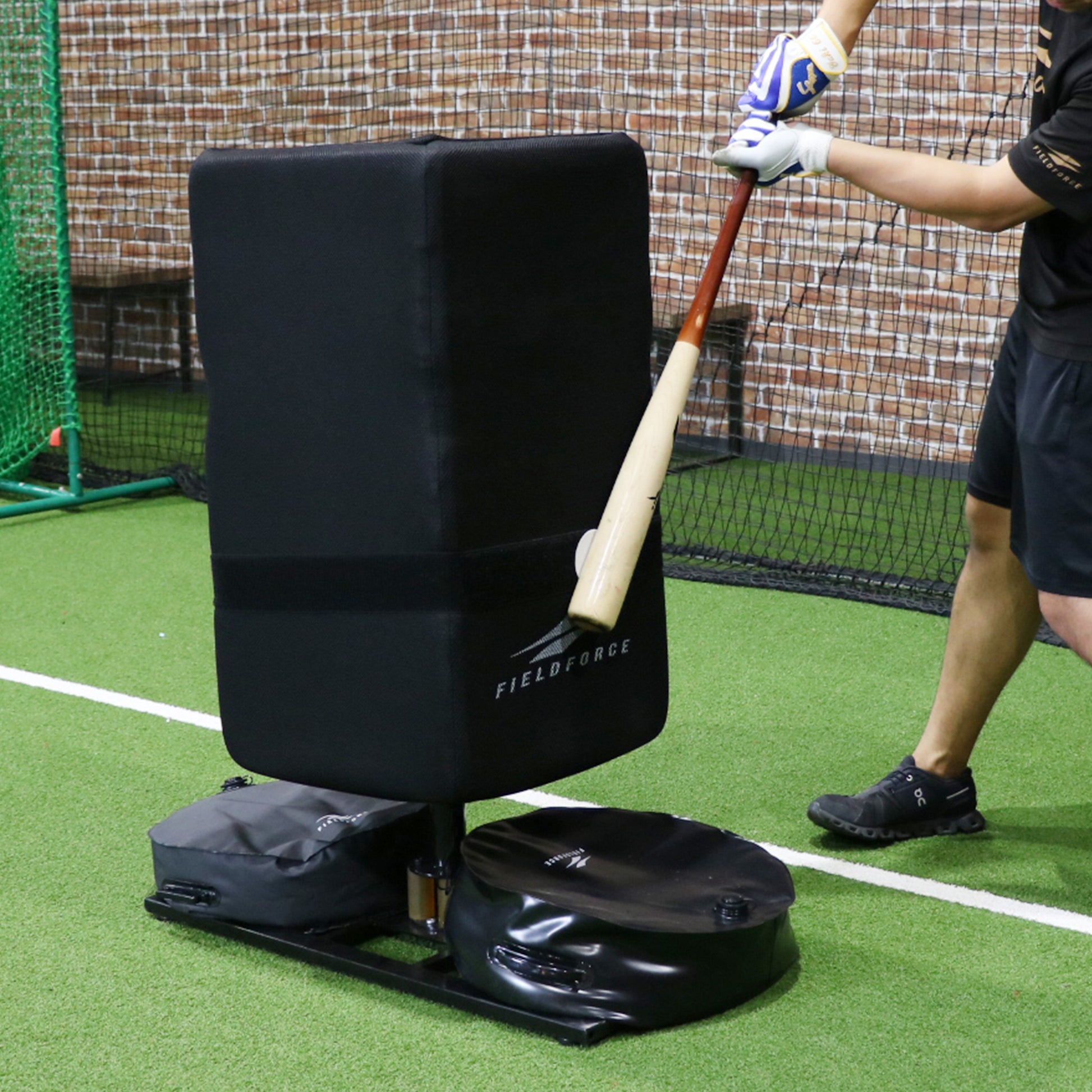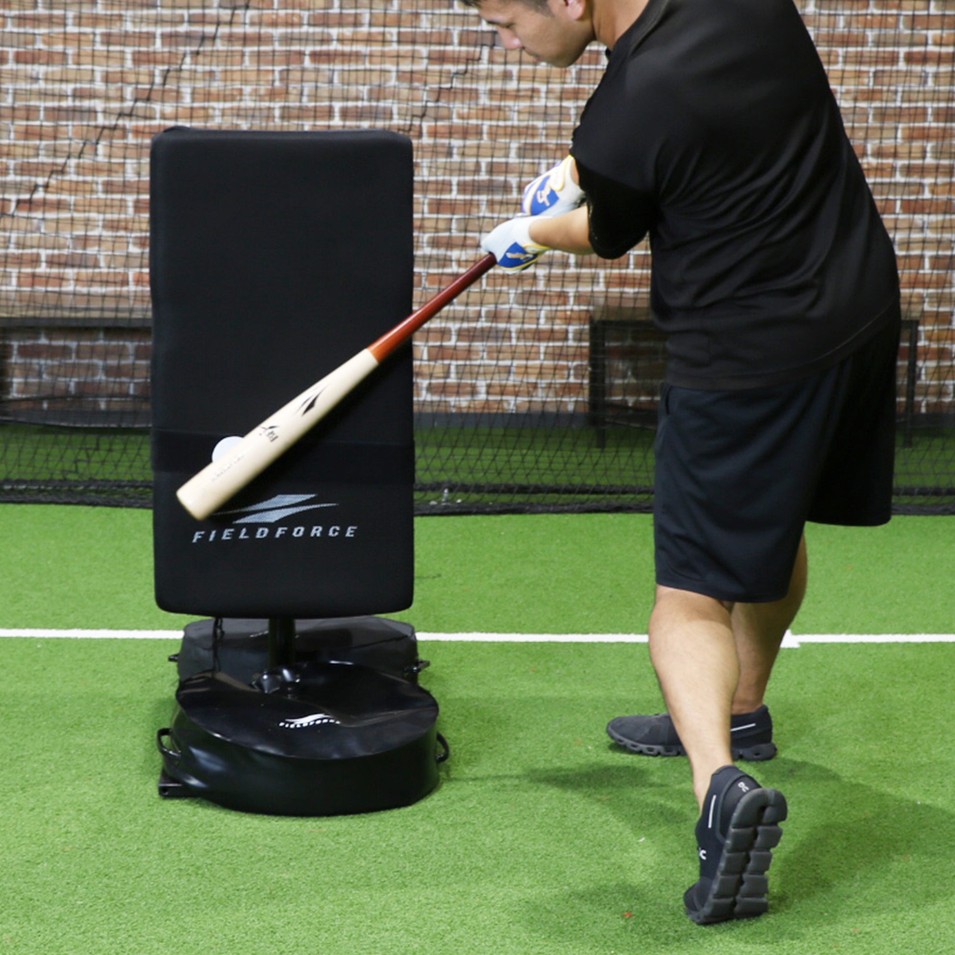 The hitting area matches the width of home plate (approx. 17 in.), allowing practice from inside to outside pitches.